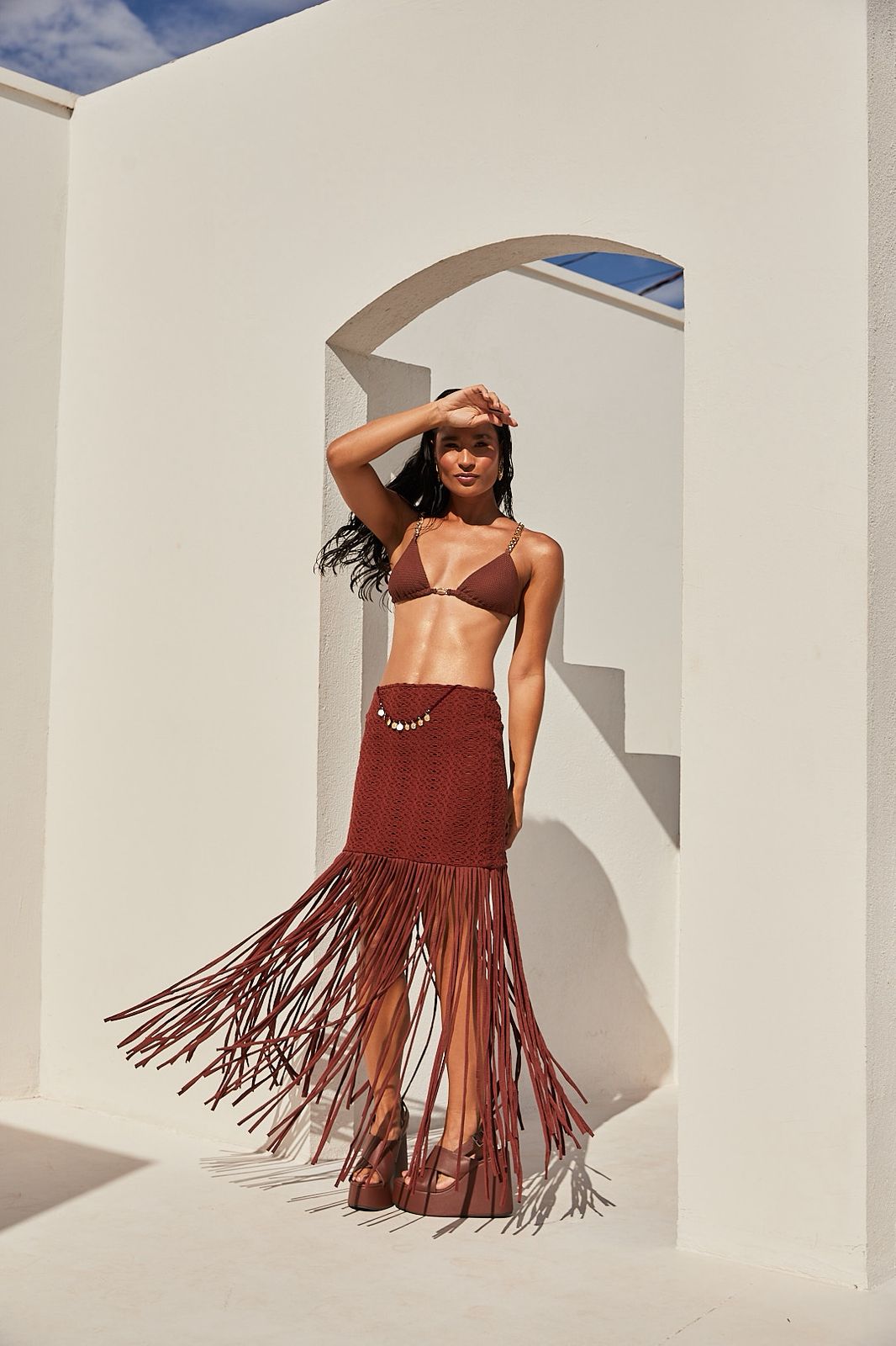 A Saia Suzane Marrom destaca-se pelo design exclusivo com franjas longas que conferem movimento e atitude ao visual. Confeccionada em material leve, essa saia oferece conforto mesmo em dias mais quentes, ideal para compor looks modernos e versáteis. Sua tonalidade marrom é fácil de combinar, sendo perfeita para ocasiões casuais ou eventos ao ar livre. O caimento é ajustado ao corpo, valorizando a silhueta sem abrir mão da liberdade de movimentos.